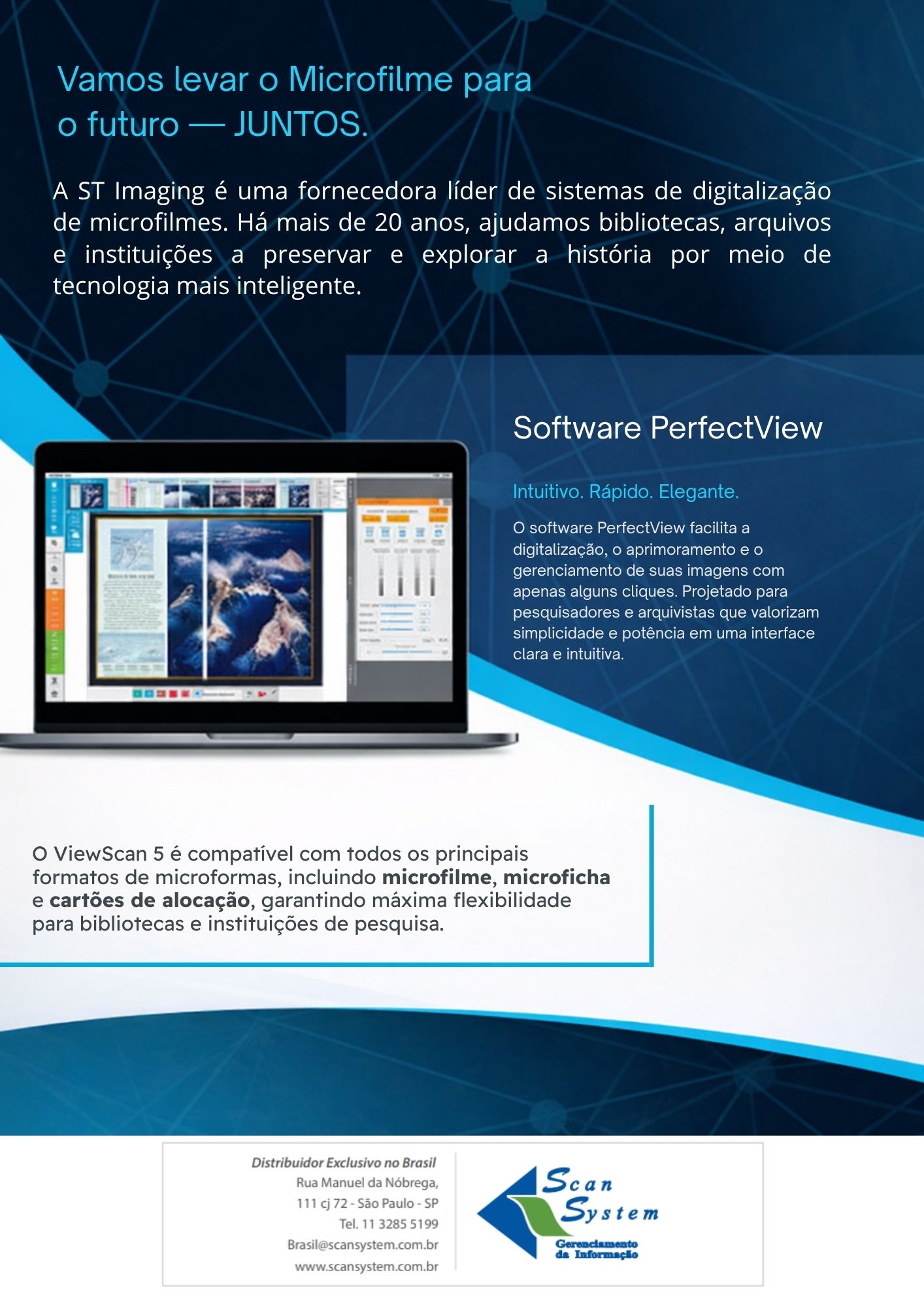 Além disso, o sistema conta com o software PerfectView, uma plataforma intuitiva que facilita a captura, visualização e gerenciamento das imagens digitalizadas , tudo isso sem custos adicionais de licença.